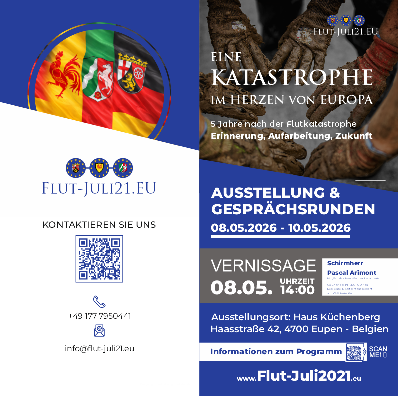 Vom 08. bis 10. Mai 2026 ist sie im Haus Kuechenberg in Eupen zu sehen. Damit setzt die Ausstellung ihren Weg fort – näher an den Menschen, näher an den betroffenen Regionen.